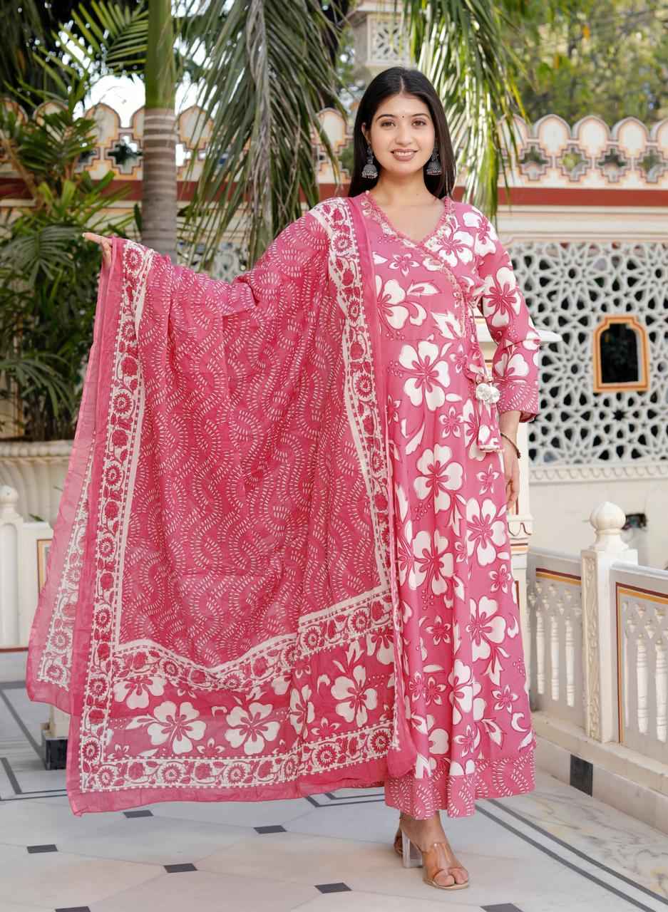 Cotton Printed Anarkali Kurti pant With 2.5 Meter dupatta – 1453VC1840057