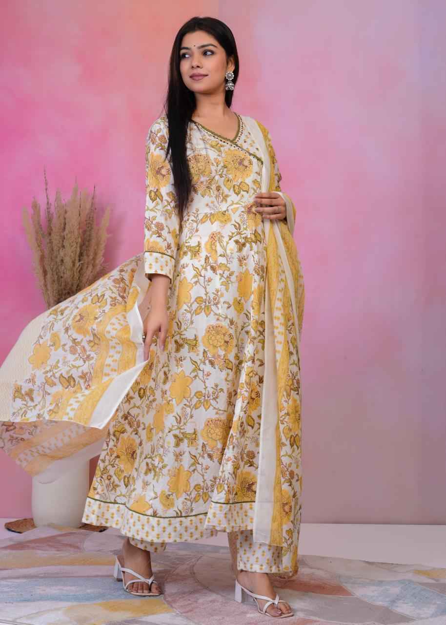 Cotton Printed Anarkali Kurti pant With 2.5 Meter dupatta – 1853VC1840046